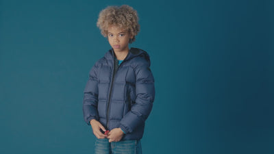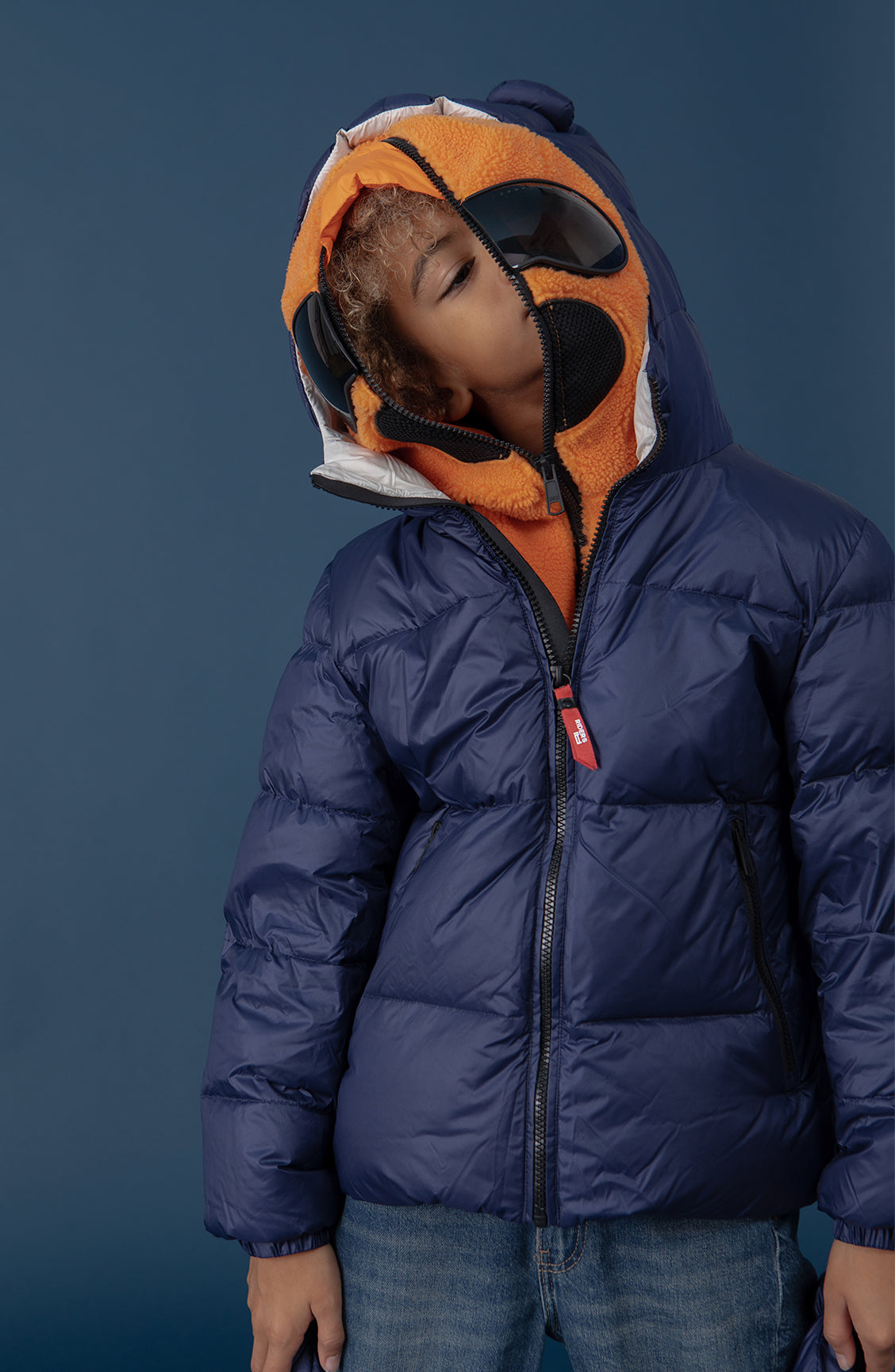 Piumino bambino cappuccio con lenti